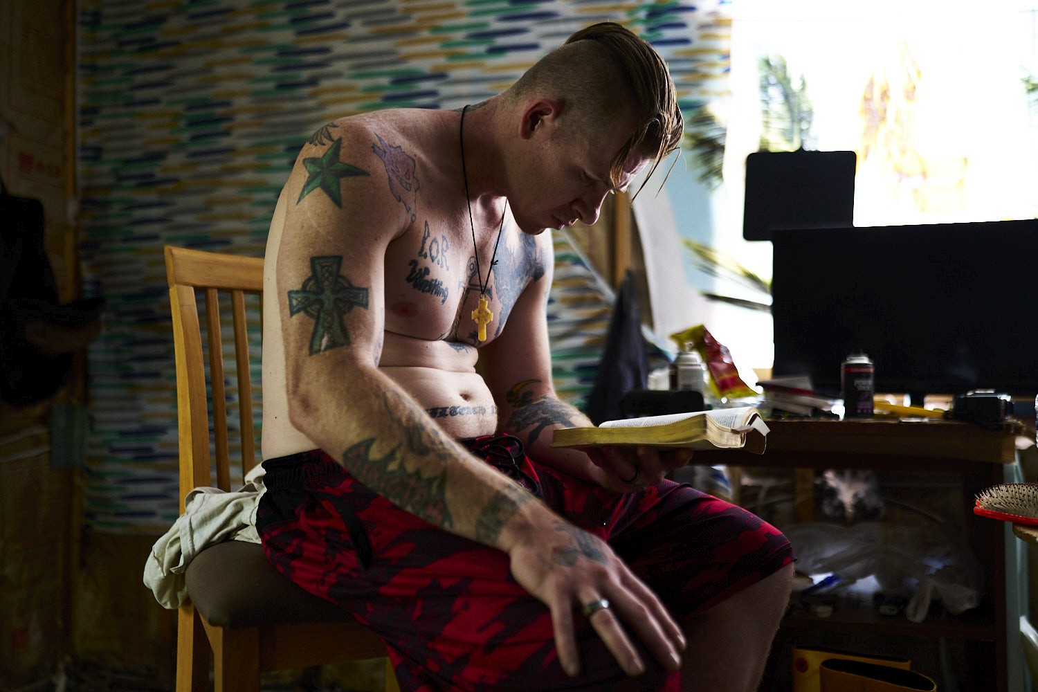 Deathmatch offers a form of expression and a release for Bob as he explains “Something about when an opponent busts me open, I become a whole new nightmare, my adrenaline is off the charts, I feel alive.” Despite his deep Christian faith, Bob and his mother were ostracized from their church due to his involvement in deathmatch wrestling. Bob maintains a personal relationship with God and prays for his safety—and the safety of everyone involved—before every match, often alongside Mamma Liz.