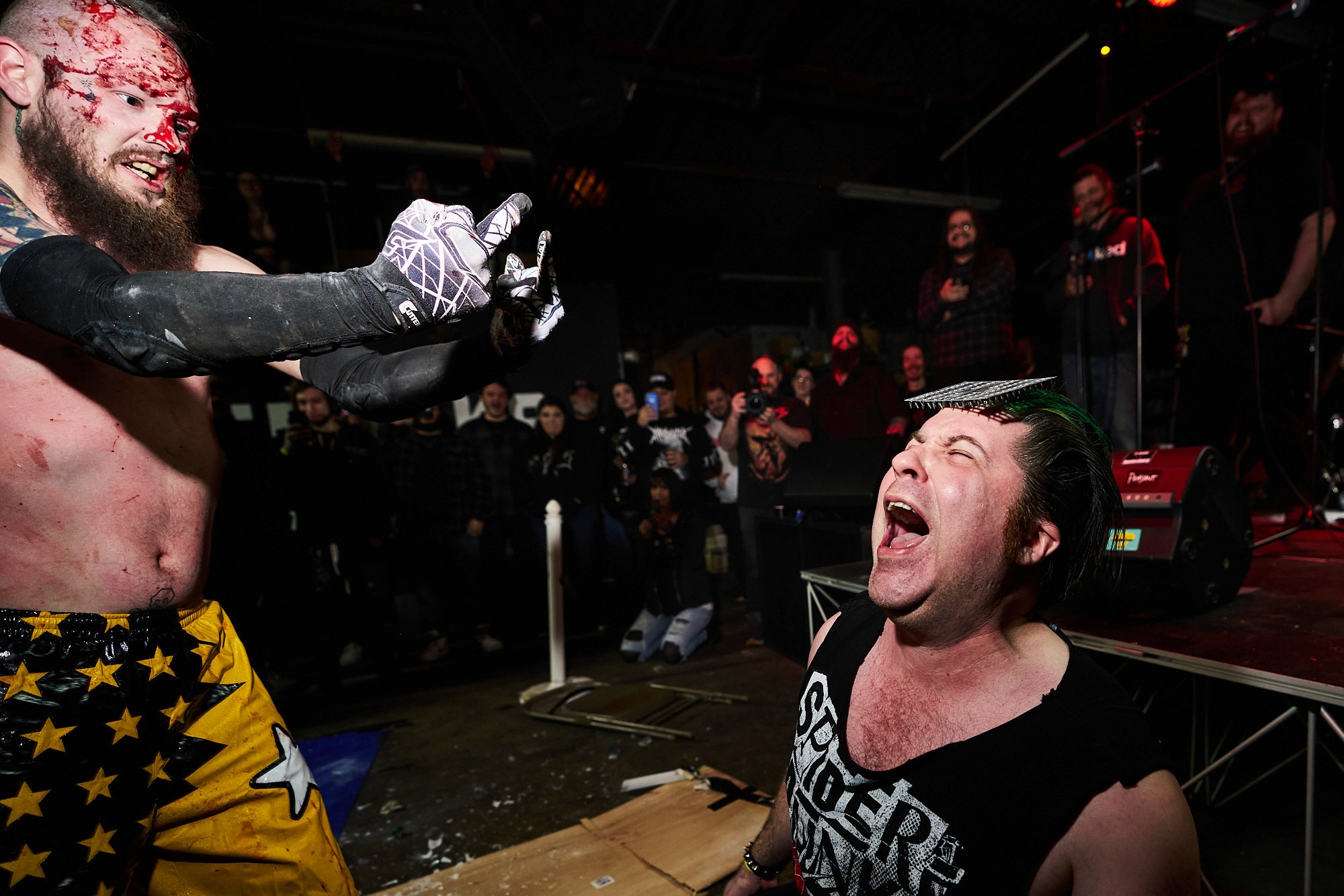 But the life of a deathmatch wrestler isn't glamorous. Carroll often finds himself driving long hours for little pay, only to return home bruised and battered. "Some weekends, you drive to New Jersey for $25, and you’re like, ‘Why did I fucking do that?’" he admits. "But then you get the clips or the pictures, and you go, ‘Okay, that’s cool.’ That’s what keeps me going." The shock and awe that he gets from the fans and social media posts is something he still enjoys. Being around so much blood and broken glass has desensitized him to it completely. "The ten, fifteen minutes that you’re out there are the most exciting ten, fifteen minutes of the week," he says. "It’s like being a superhero or a supervillain. All eyes are on you. You have the spotlight. You have something cool planned, and hopefully, people care."